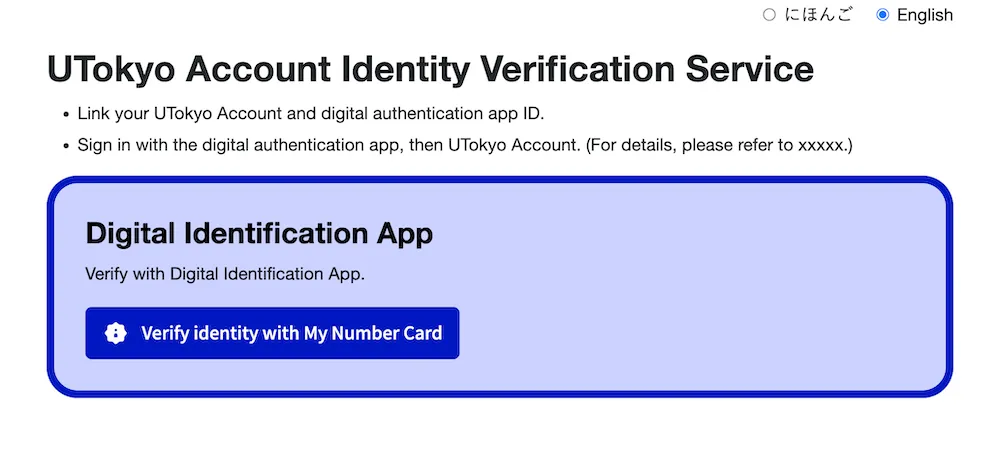 1. Please access the UTokyo Account Identity Verification Service.