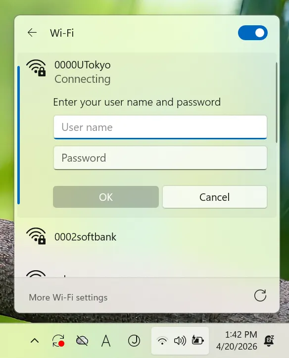 | Password | Enter the password for the UTokyo Wi-Fi. |