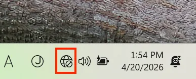 Select the globe icon in the taskbar, and then select the “>” icon next to fan-shaped “Wi-Fi” icon to enable the Wi-Fi function. If there is only the fan-shaped “Wi-Fi” icon but no globe icon, simply select the former.