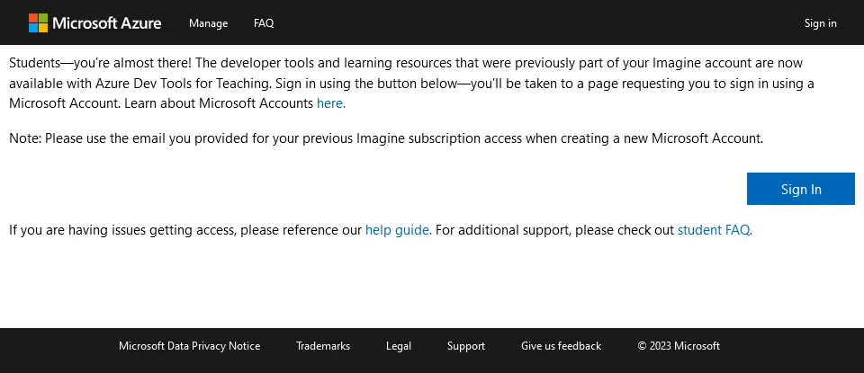 1. 以下のAzure Dev Tools for Teachingのページにアクセスしてください. Azure Dev Tools for Teaching